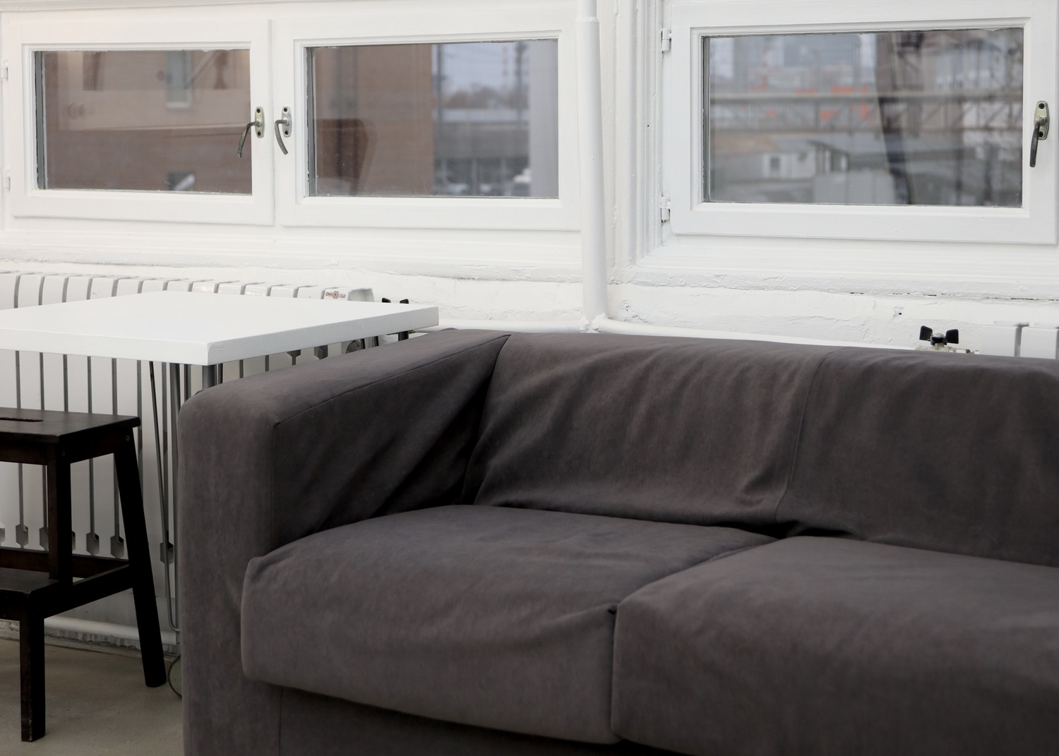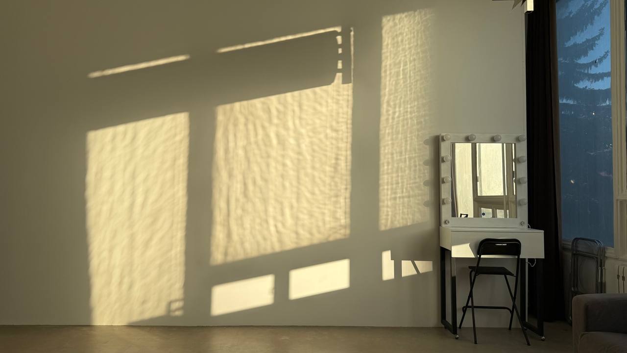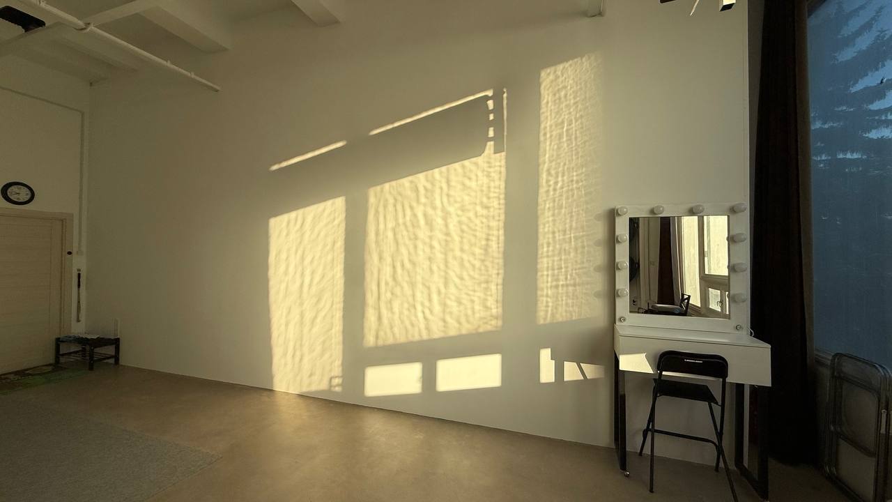 - Панорамное окно 6*3 м.кв. даёт возможность снимать с естественным солнечным светом.